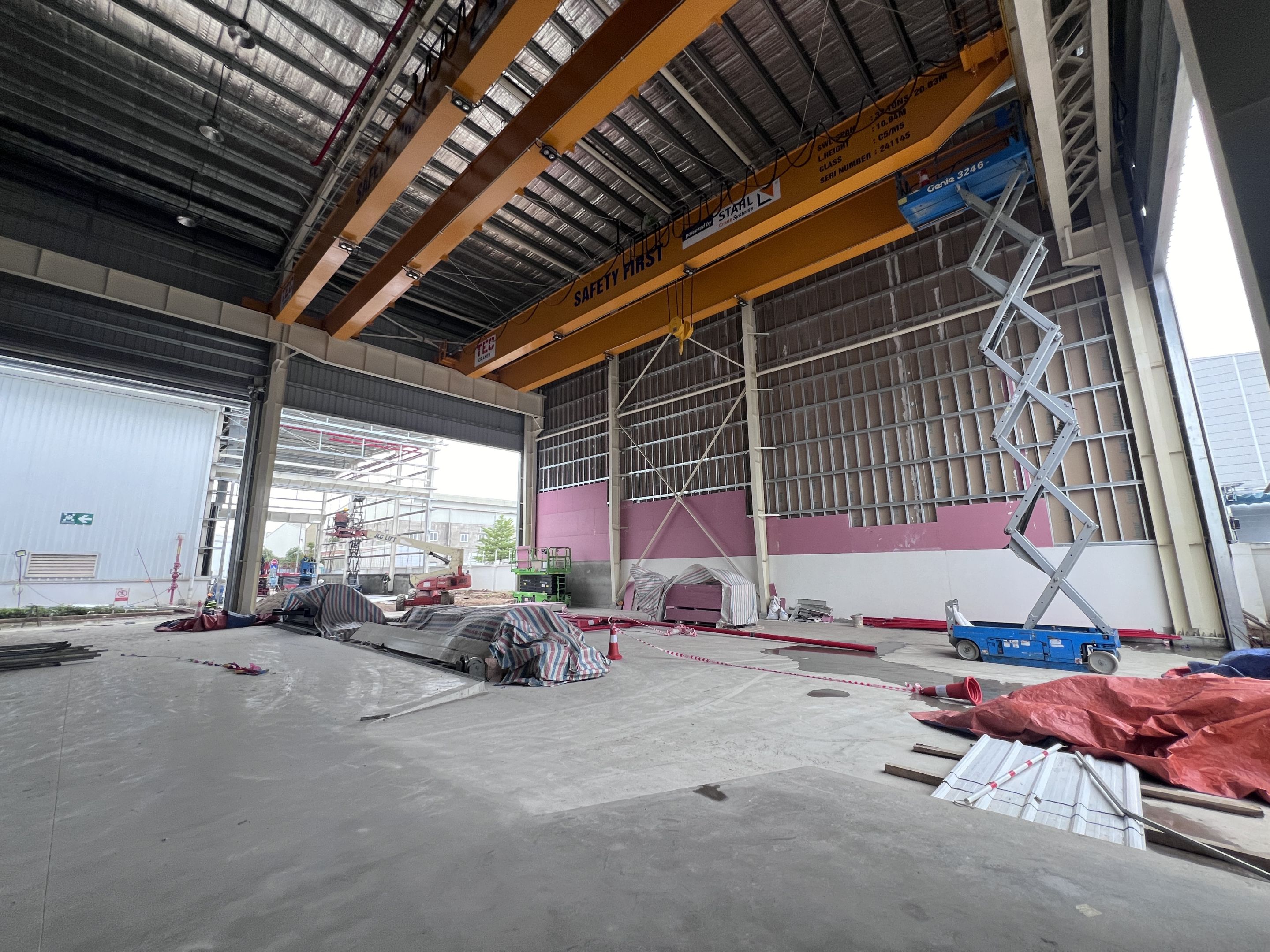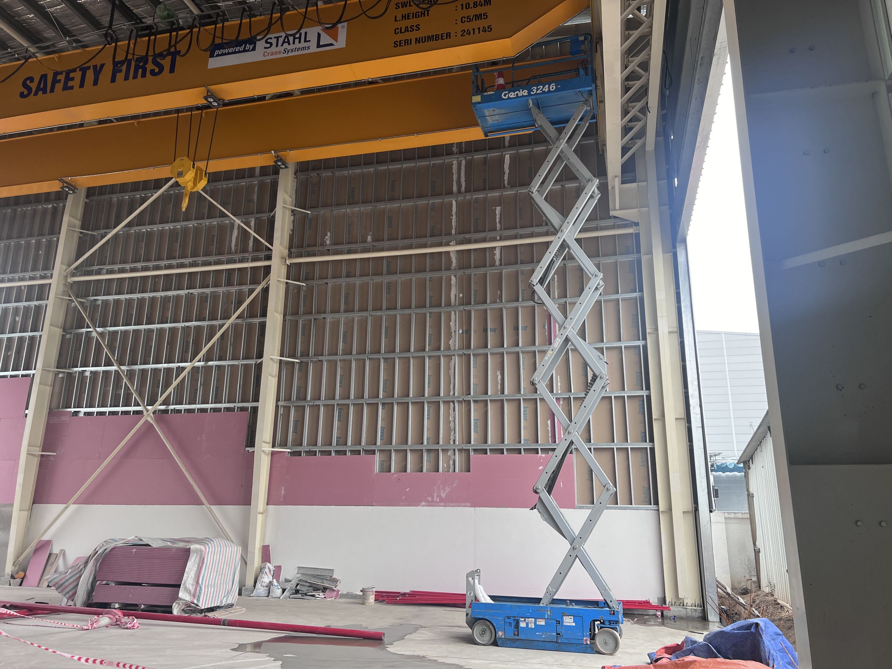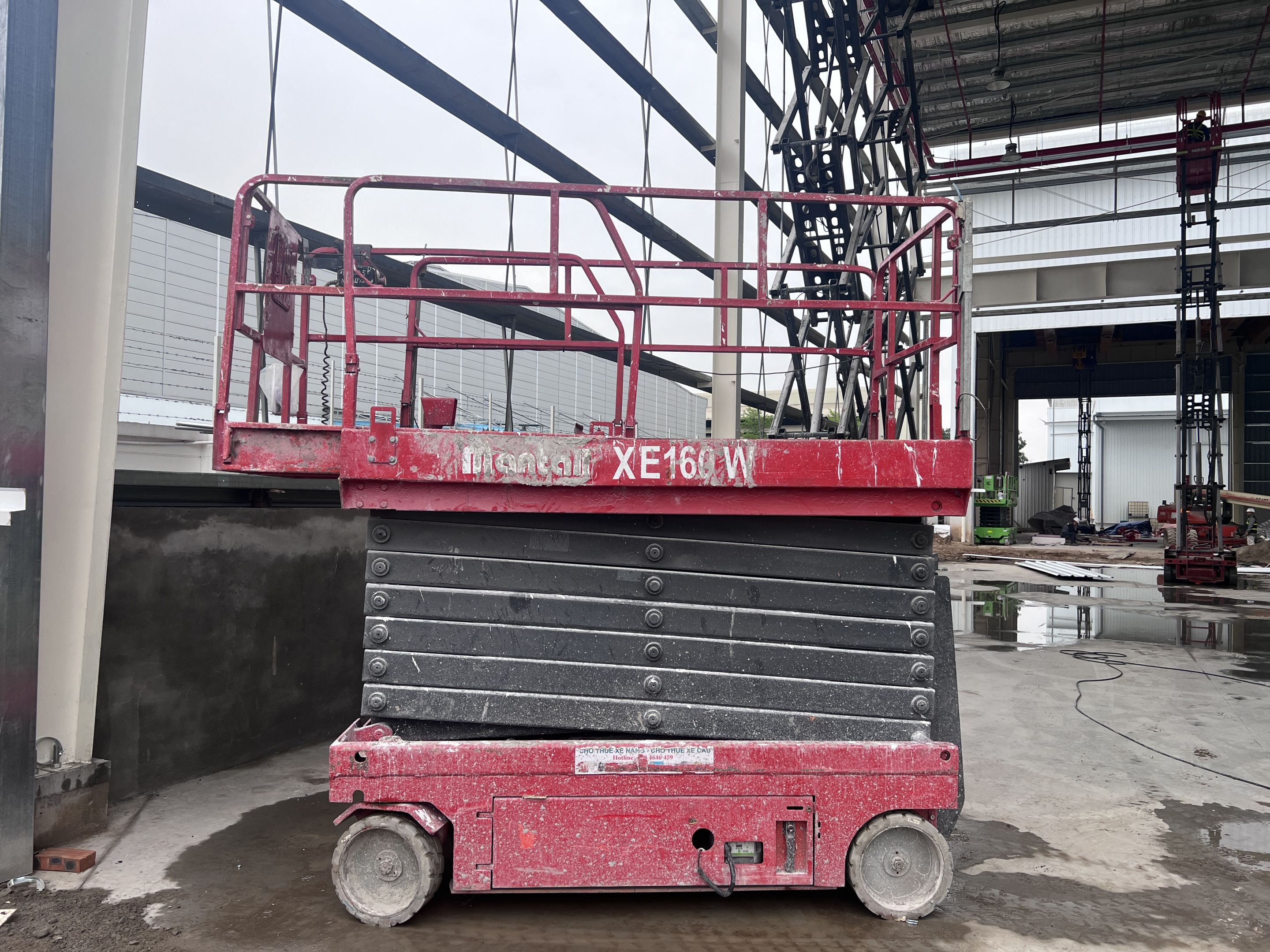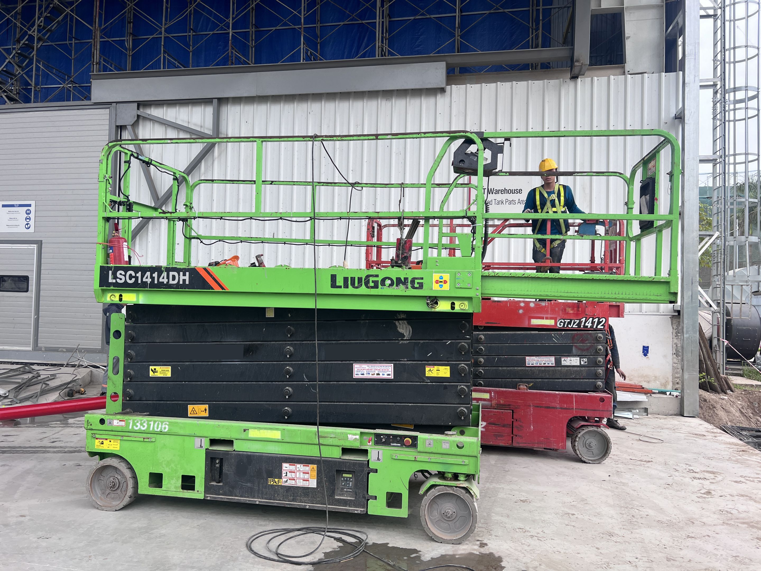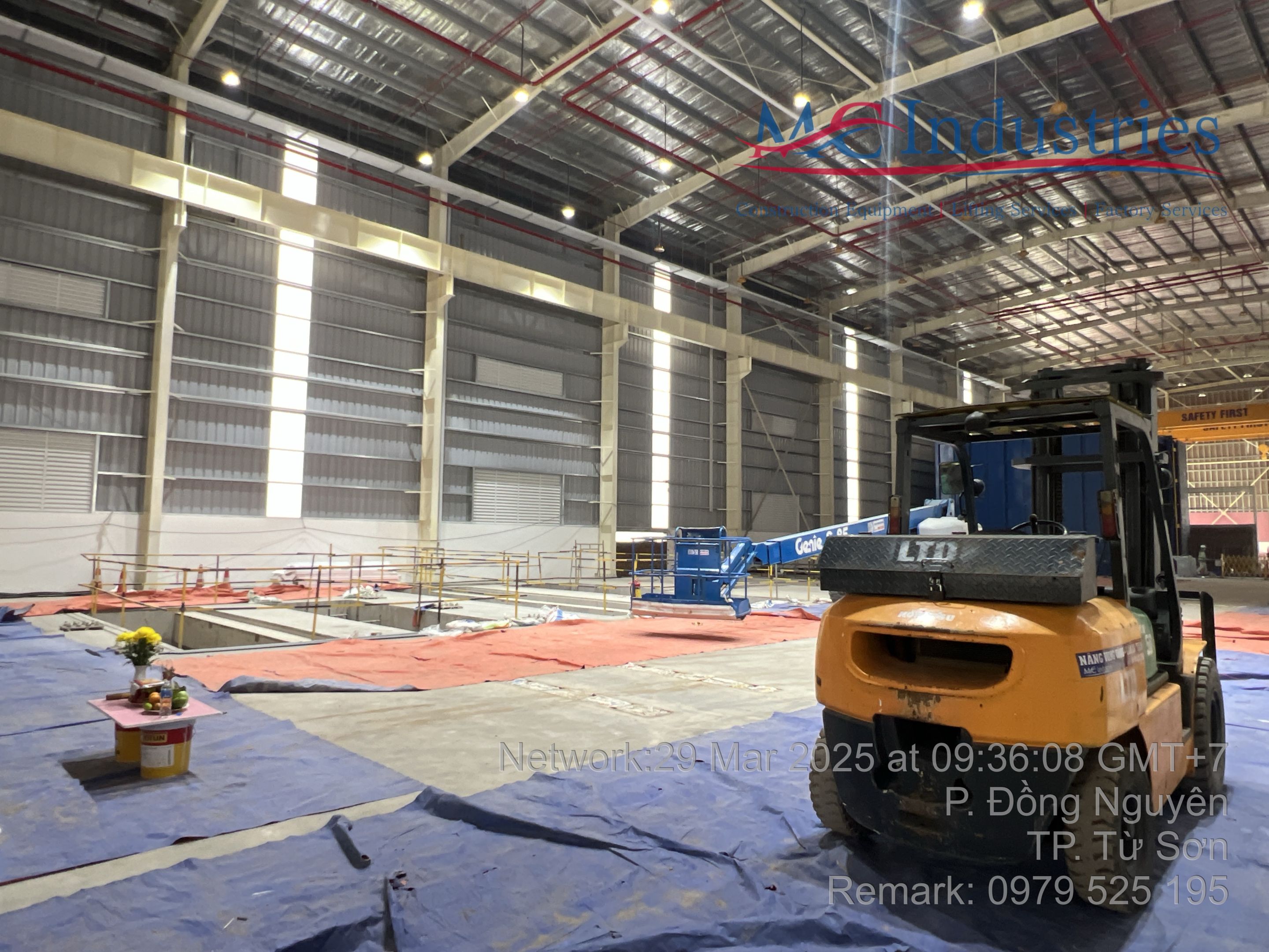 Khách hàng thuê 1 xe nâng người 28m boom lift Genie , xe nâng người 14m, xe nâng người 16m, xe nâng người 12m cắt kéo phục vụ quá trình lắp đặt kết cấu, PCCC, Hệ thống cơ điện nhẹ cho nhà máy.
