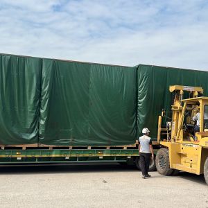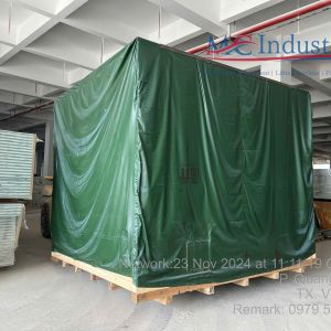 Sau khi hàng được đưa vào nhà máy, đội ngũ kĩ thuật tiến hành tháo thùng gỗ, bạt phủ hàng hóa và cắt đai để đưa nguyên hệ thống máy móc vào vị trí lắp đặt.