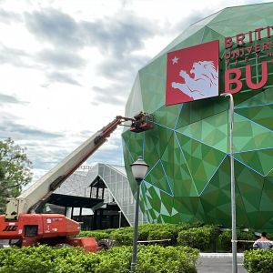 MC Industries – Đối Tác Cung Cấp Xe Nâng Người Cho Dự Án Lắp Đặt Vách Kính Và Trang Trí Tại Trường Đại Học British University BUV.