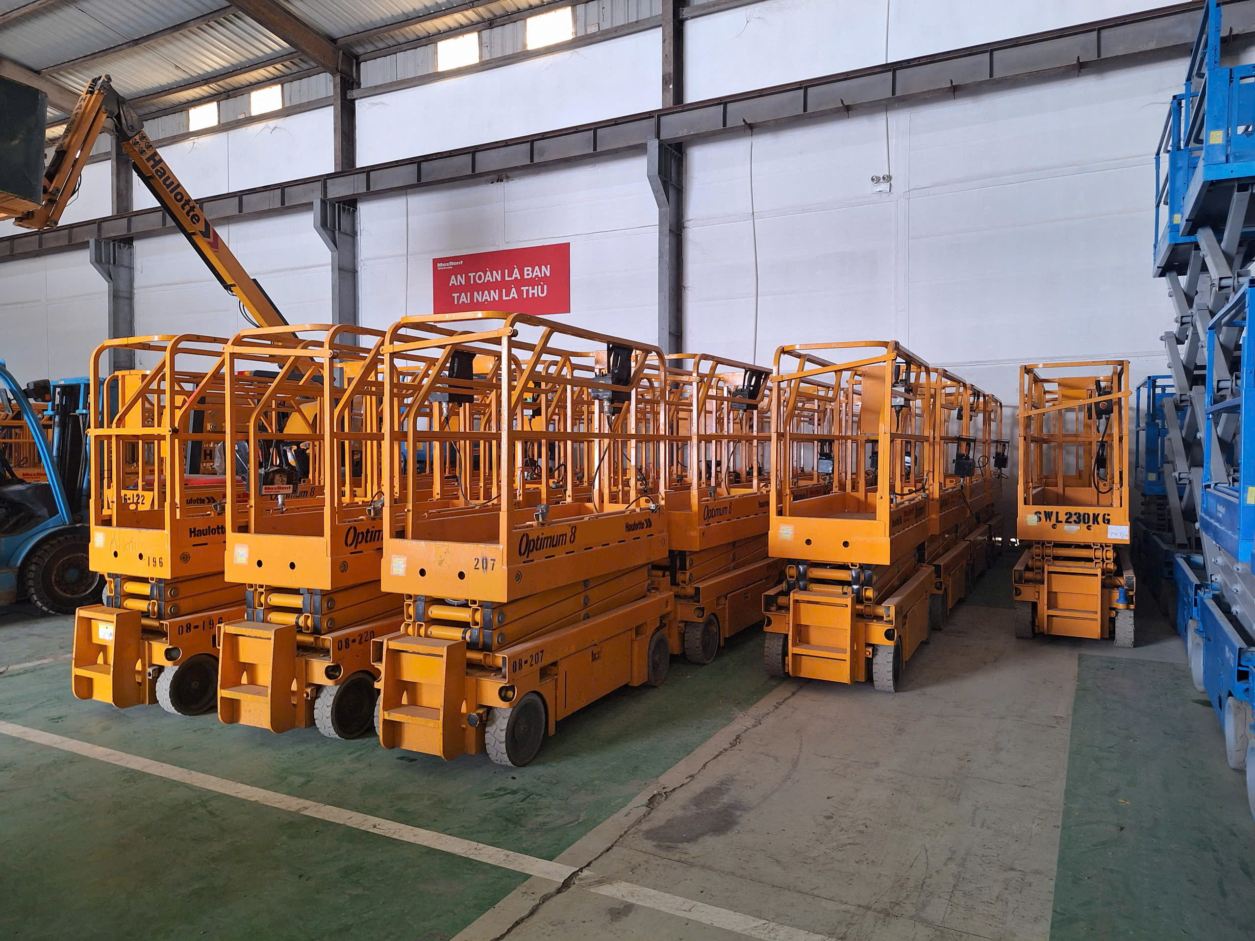 Thứ hai, hãy quan sát quy mô và sự đa dạng của bãi xe. Một đơn vị chuyên nghiệp sẽ có số lượng xe lớn, đa dạng chủng loại từ xe cắt kéo (Scissor Lift) đến xe boom (Boom Lift), từ nhiều thương hiệu khác nhau. Điều này cho phép anh chị có nhiều sự lựa chọn và so sánh trực quan, thay vì bị giới hạn bởi một vài mẫu xe duy nhất.