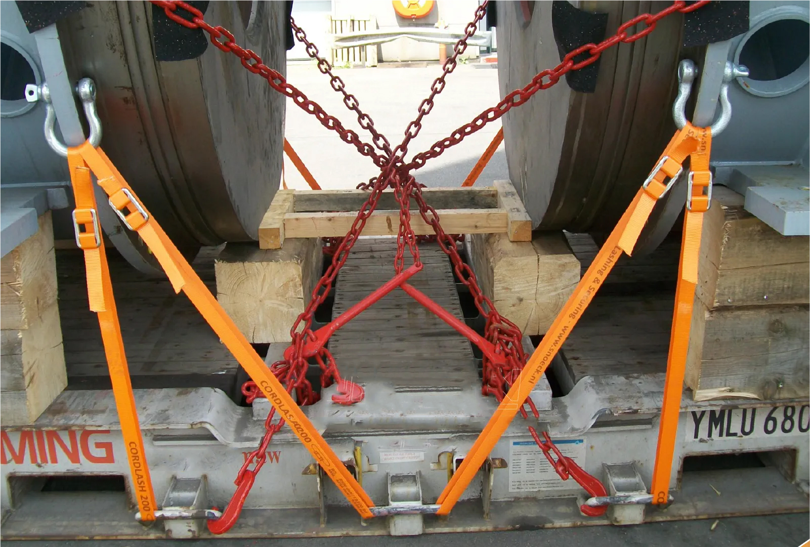 MC Industries Chúng tôi cung cấp giải pháp toàn diện trong việc cố định, bảo vệ và vận chuyển hàng hóa công nghiệp nặng — từ máy móc, thiết bị, thép cuộn, kiện gỗ, pallet hàng xuất khẩu, đến hàng siêu trường / siêu trọng. Với đội ngũ kỹ sư và công nhân giàu kinh nghiệm, cùng hệ thống vật tư đạt chuẩn (cáp thép, dây đai tăng đơ, xích, bulông, kê gỗ, bệ kê — đáp ứng đúng WLL), chúng tôi thiết kế sơ đồ chằng buộc phù hợp theo từng kiện hàng, đảm bảo trọng tâm ổn định, chống trượt, lắc, xoay trong suốt quá trình vận chuyển.