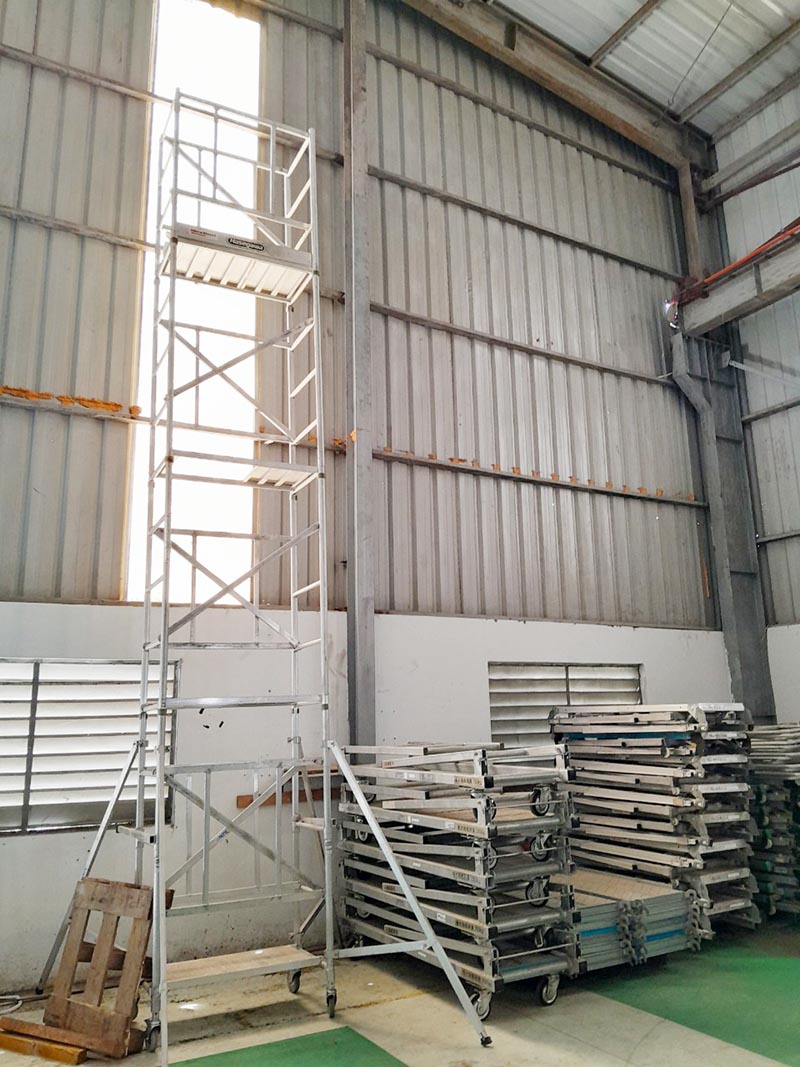 - Kích thước gấp gọn của bộ giàn giáo di động này nhỏ, tiện lợi, dễ dàng vận chuyển và lưu kho cất giữ