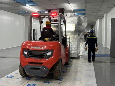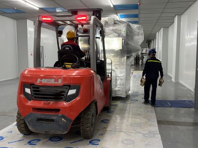 Chiều cao nâng tối đa lên đến 7.000mm, tốc độ nâng 450mm/s nhờ motor nâng 26.5Kw, giúp nâng hạ nhanh chóng, chính xác, tăng hiệu suất công việc.