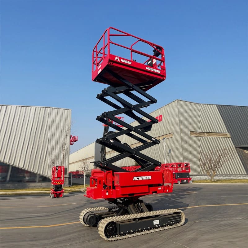 Hình ảnh xe nâng người 12m cắt kéo chạy điện bánh xích Hered HC1018EA