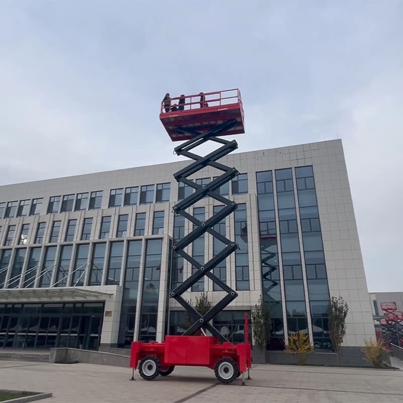 Công việc thực tế: Xe được thiết kế riêng cho các không gian khổng lồ như nhà chứa máy bay (Hangar), siêu nhà máy sản xuất linh kiện điện tử, ô tô, hoặc các tổng kho logistics có trần cực cao. Nó cho phép 4 công nhân cùng mang theo ống thông gió (HVAC) cỡ đại, máng cáp điện, hoặc ống thép PCCC nặng lên độ cao 20m+ để thi công một cách an toàn mà không bị rung lắc.