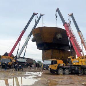 - Chiều cao nâng tối đa: 103.3 m (Main boom 72m, outrigger fully extended 8.7m, counter weight 85t + 36 m lufting jib)