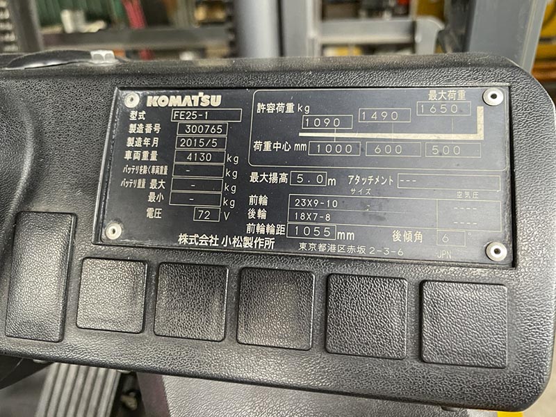 Thông số kỹ thuật xe nâng hàng chạy điện 2.5 tấn Komatsu FE25-1 Specs
