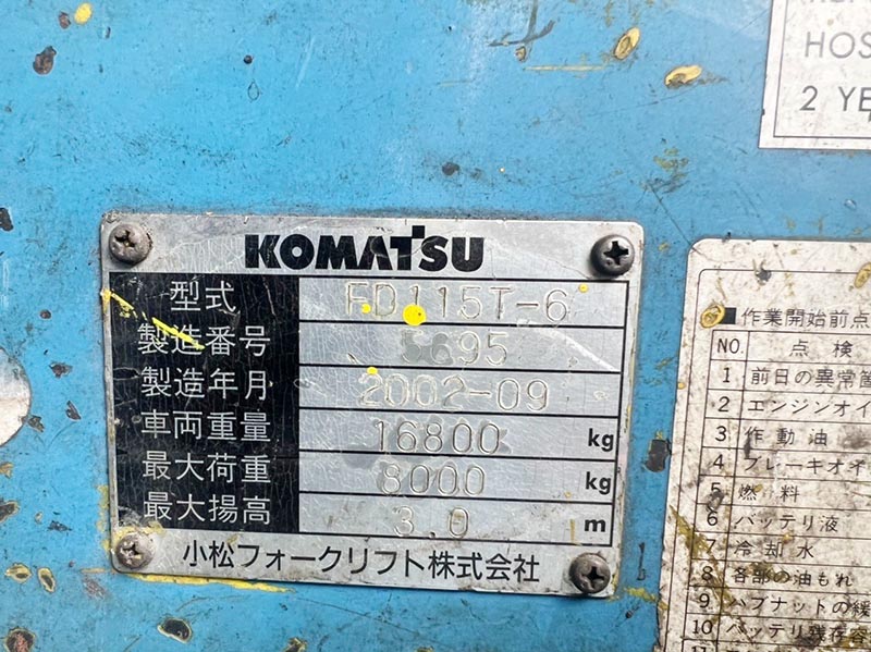 Thông số kỹ thuật xe nâng hàng chạy dầu 11,5 tấn Komatsu FD115T-6 Specs