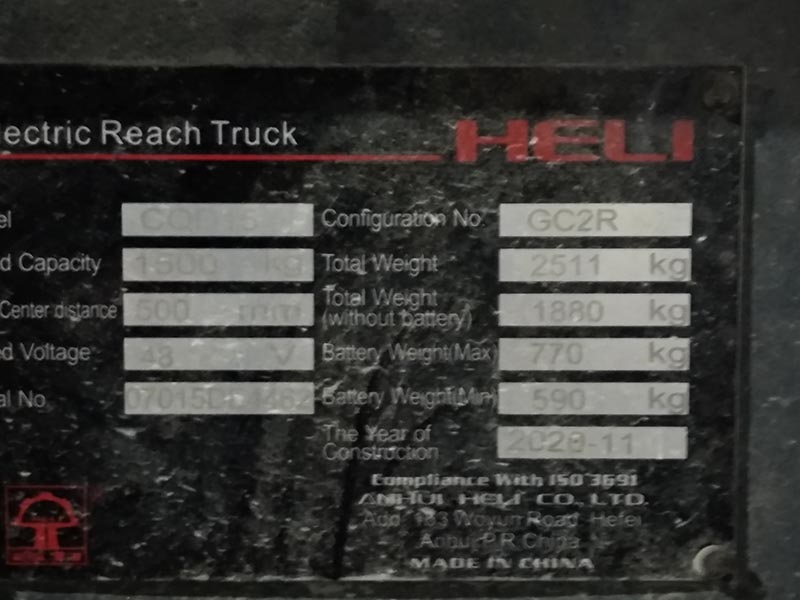 Thông số kỹ thuật xe nâng hàng chạy điện 1,5 tấn Heli CQD15 Specs