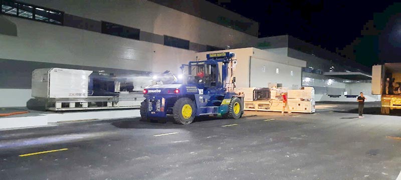 - Kích thước xe (bao gồm cả càng nâng) D x R x C: 7.905 x 3.095 x 3.705 mm