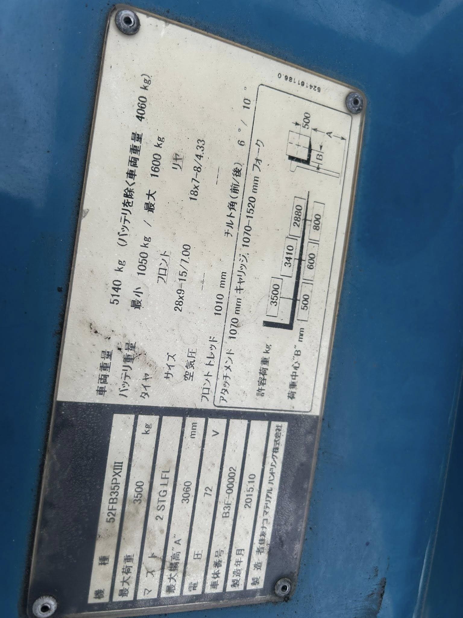 Thông số kỹ thuật xe nâng hàng chạy điện ngồi lái 3.5 tấn Sumitomo 52FB35PXIII