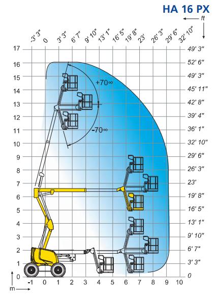 Thông số kỹ thuật xe nâng người 16m boom lift Haulotte HA16PX Specs
