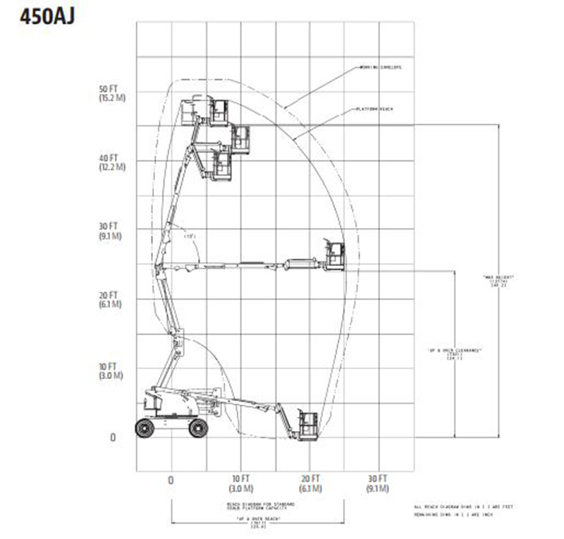 Thông số kỹ thuật xe nâng người Boomlift 16m JLG 450AJ Specs