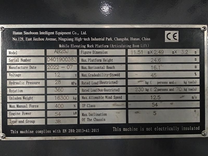 Bảng tải xe nâng người 26m booml lift Sinoboom AB25J