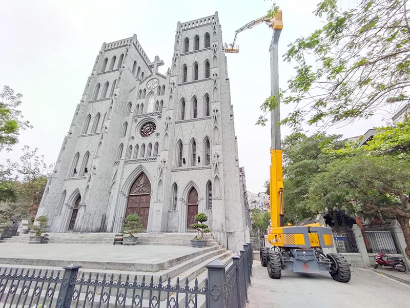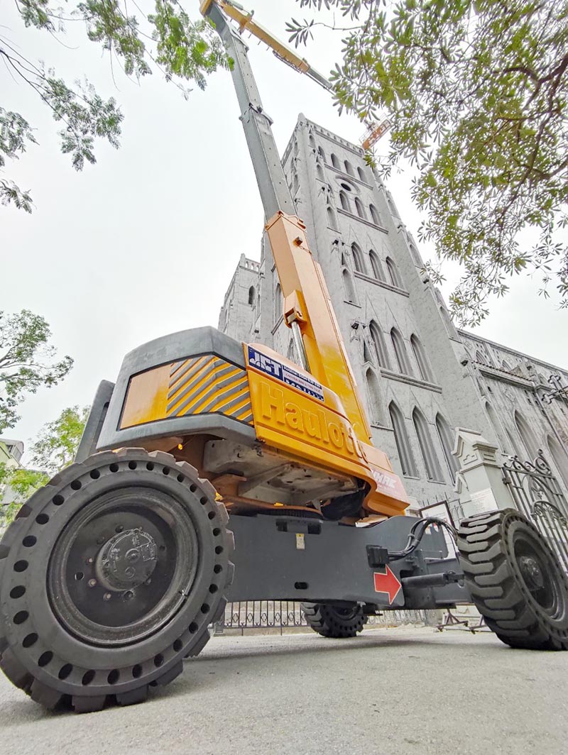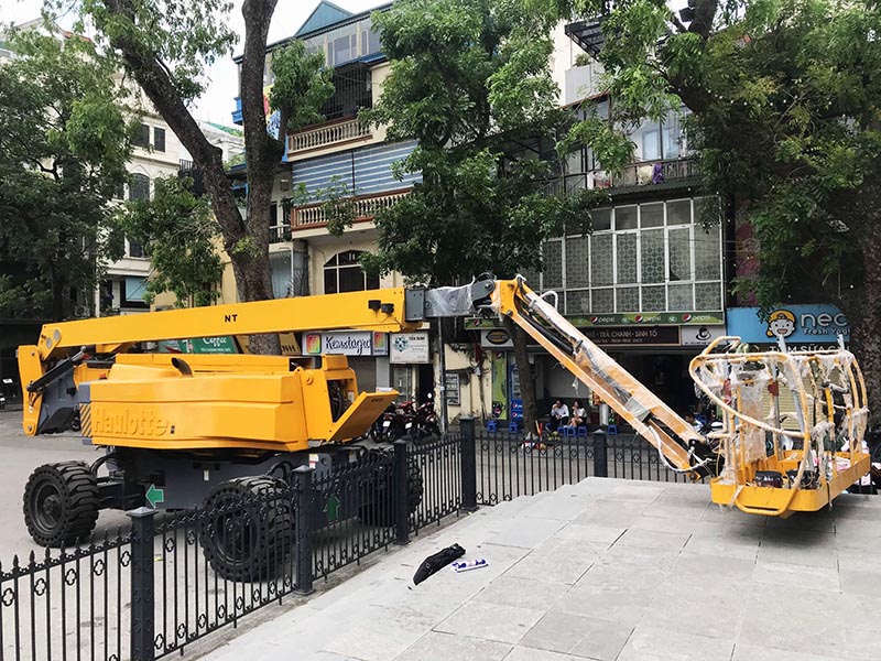 Hình ảnh xe nâng người Boomlift 41m làm việc Haulotte HA41PXNT