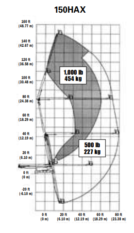 Thông số kỹ thuật xe nâng người Boomlift 48m JLG 150HAX