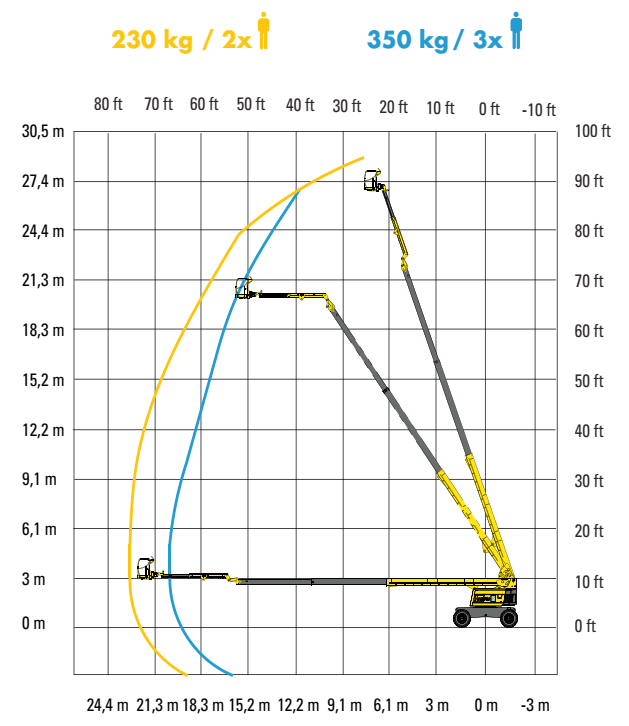 - Chiều cao làm việc: 27,5 m
